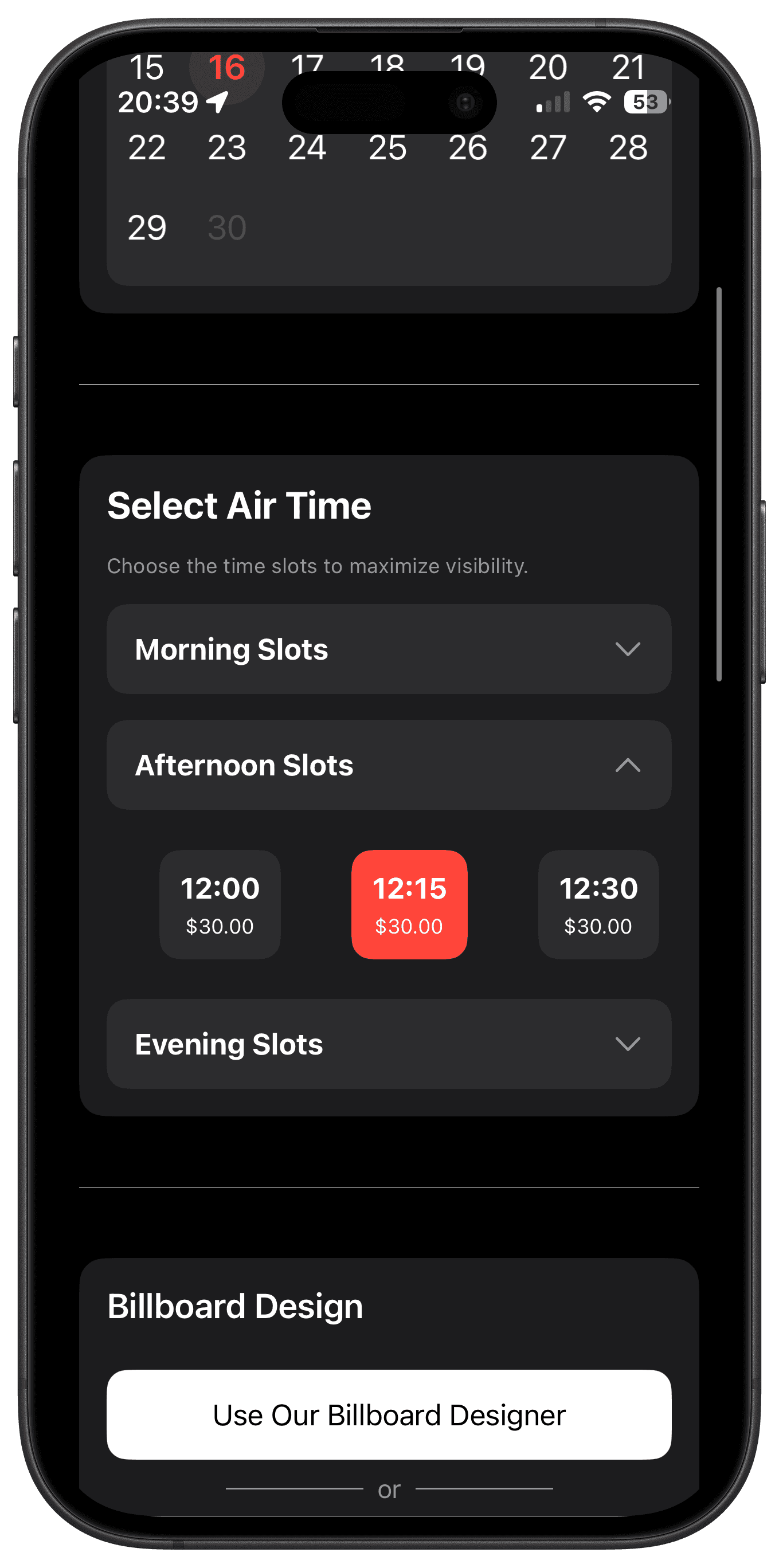 Book a billboard in three simple taps. Download today on the iOS app store.